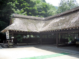 お、ずいぶん風情のある休憩所ですね。中から何かが燃える匂いが…近寄ってみましょう。