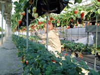 「須田いちご園」は地ベタじゃなく、腰の高さ位の棚で栽培してるので、イチゴは泥も付かず清潔!ヤンキー座りしなくてもいいからすごく楽!スカート&ヒールのお姉様も、いらっしゃい!(←三枝師匠ふうに)
