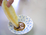 おやおや?…ビミョーな味です。つけすぎるとムセます。んー、かまぼこには酢の酸味が強すぎます。「体をやわらかくしたい!」という人以外にはお勧めしません。